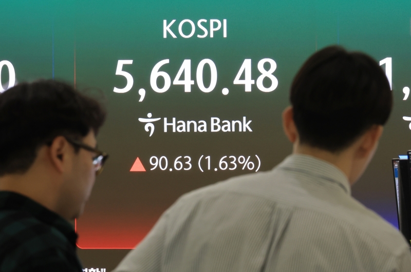 17일 코스피 지수는 90.63포인트(1.63%) 오른 5,640.48로 마감했습니다.