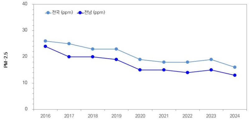 2024년 전남지역 미세먼지와 초미세먼지 농도가 최근 10년 중 가장 낮고, 특히 초미세먼지는 전국에서 가장 낮은 수준이었던 것으로 나타났습니다.
