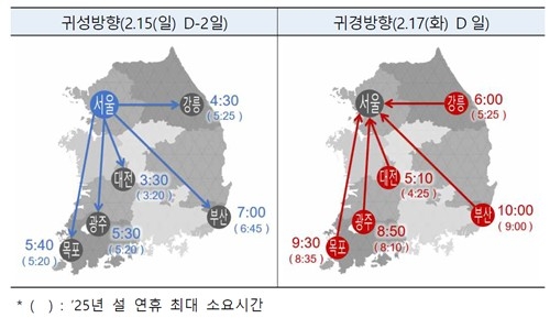 ▲ 설 연휴 귀성·귀경 예상 소요 시간 [연합뉴스]