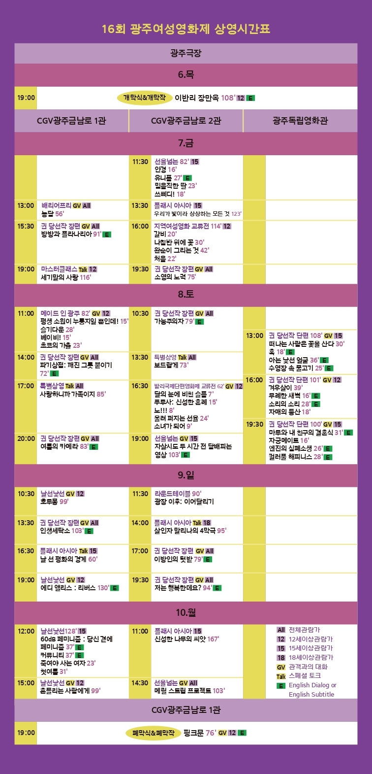 자세한 프로그램 일정은 광주여성영화제 홈페이지나 인스타그램(@wffig)에서 확인할 수 있습니다.