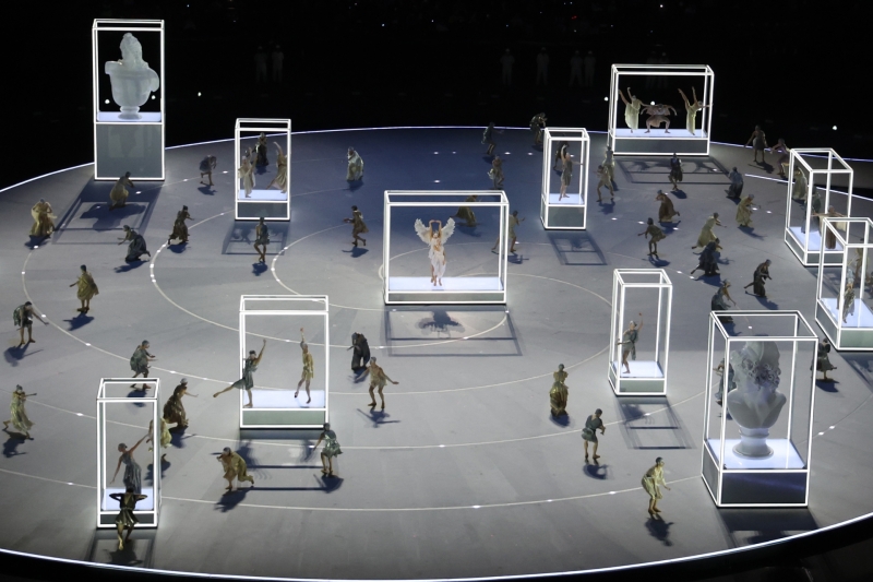개회식은 16세기 이탈리아 조각가 안토니오 카노바의 작품을 재현하는 무대로 시작했습니다.