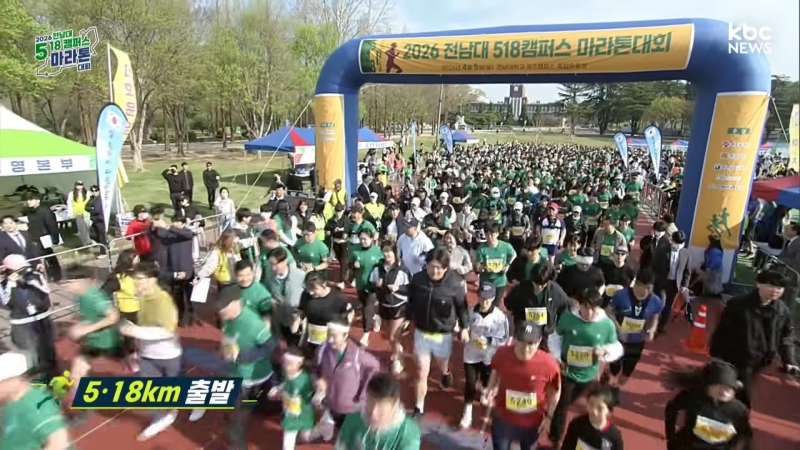 전남대학교가 주관하는 '5·18 전남대 캠퍼스 마라톤대회'가 5일 오전 광주 북구 용봉동 일원에서 처음으로 개최됐습니다.