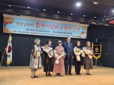 억새꽃 만개한 10월의 끝자락, 영호남문학인들이 한자리에 모여서 가을의 서정을 노래하는 뜻깊은 행사가 열렸습니다. 영호남광주문인협회는 어제(24일) 광주예총 방울소리공연장에서 광주, 전남, 부산 3개 시·도 영호남문학인 300여 명이 참석한 가운데 '영호남문학 출판기념회 및 문학강연'을 개최했습니다. 이날 행사에는 임원식 영호남광주문인협회장, 박미정 부산영호남문인협회장, 이근모 광주문인협회장, 정관웅 전남문인협회장, 이정재 전 광주교대 총장 등이 참석했습니다. 박미정 부산영호남문인협회장은 축사를 통해 "광