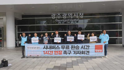 진보당 광주시당이 광주 시내버스 무료 환승 시간을 현행 30분에서 1시간으로 늘려 달라는 민원을 광주시에 제출했습니다. 이번 민원에는 시민 2천923명의 서명이 함께 첨부됐습니다. 진보당 광주시당은 배차 간격이 30분 이상인 노선이 많아 현 제도로는 환승 혜택을 누리지 못하는 시민이 적지 않다고 지적했습니다. 또 대전 등 다른 지자체의 사례를 들어 광주광역시가 환승 시간을 연장하고 동일 노선 환승 제한 규정도 폐지해야 한다고 촉구했습니다.