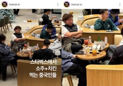 • 스타벅스서 소주 까고 치킨 먹은 외국인 관광객...시민들 '충격'