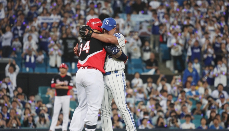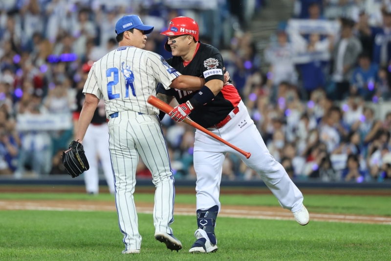 KIA 최형우, '파이널보스' 오승환과 마지막 맞대결...뜨거운 포옹으로 마무리