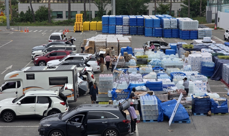 ▲ 지난달 30일 강원 강릉시 강릉아레나 주차장에서 시 관계자들이 지난 가뭄 재난사태 때 기부받은 생수를 소상공인과 사회복지시설 등에 배부하고 있다 [연합뉴스]