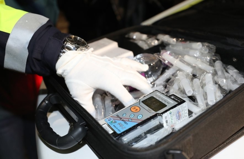경찰관은 A씨에게 생수를 건네 입을 헹구도록 한 뒤 음주측정기의 일회용 불대에 호흡을 불어넣도록 했습니다.