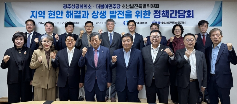 광주상공회의소는 20일 민주당 호남발전특별위원회와 '지역 현안 해결과 상생 발전을 위한 정책 간담회'를 개최했다고 밝혔습니다.