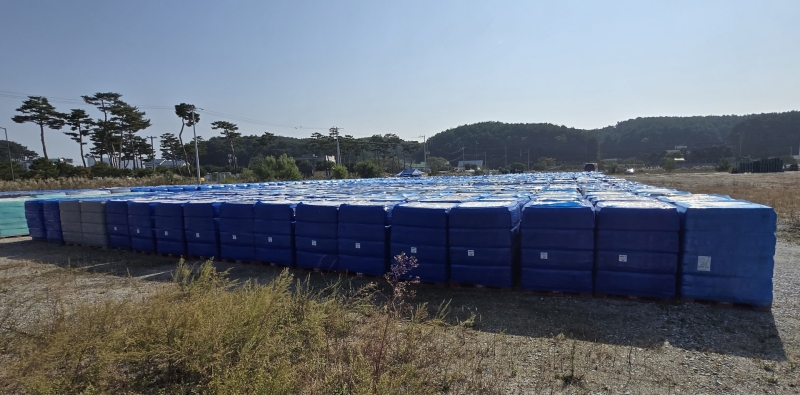 9월 하순 강릉아레나 주차장에 있던 남은 생수들은 야외 주차장으로 옮겨졌는데, 현재는 비바람을 맞고 햇볕에 그대로 노출된 채 흙먼지가 쌓이고 있는 상태입니다.