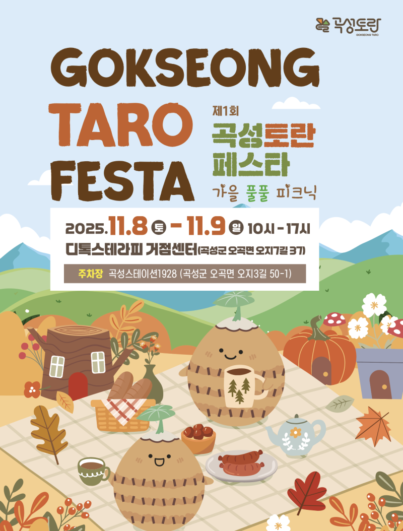 곡성군은 오는 8일부터 이틀간 오곡면 디톡스테라피센터 앞 잔디광장에서 '2025년 곡성토란페스타:가을 풀풀 피크닉'을 개최한다고 3일 밝혔습니다.