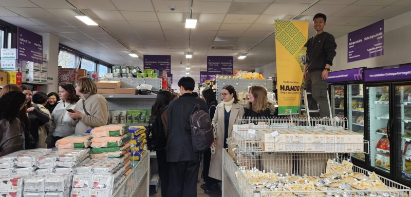개장 행사에 참석한 베를린 자유대학교 한국어과 학생들은 독일 최대 슈퍼마켓 체인 레베(REWE) 구매 담당자를 대상으로 유럽에서 K-푸드가 사랑받는 이유를 직접 설명하며 전남 제품의 우수성을 적극 알렸습니다.