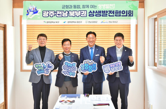 전남 장성군과 담양군, 광주 북구·광산구가 18일 장성 홍길동테마파크에서 '제9차 광주·전남 북부권 상생발전협의회'를 열고 주요 지역 현안을 함께 논의했습니다.