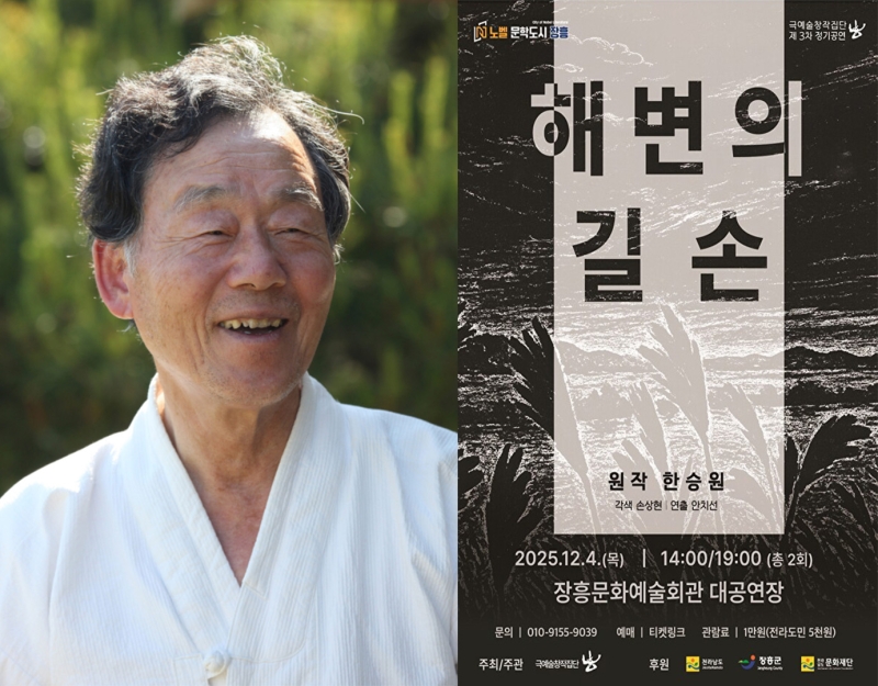 전라남도 장흥군이 다음 달 4일 한국 현대문학의 대표 작가 한승원의 소설 '해변의 길손'을 원작으로 한 연극 공연을 개최합니다.