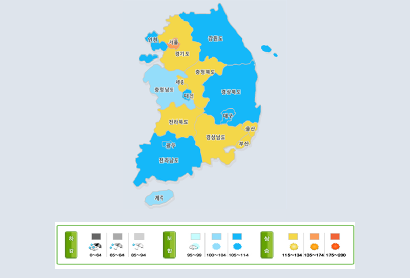 95 미만이면 하강 국면, 95 이상∼115 미만이면 보합 국면, 115 이상이면 상승 국면으로 구분됩니다.