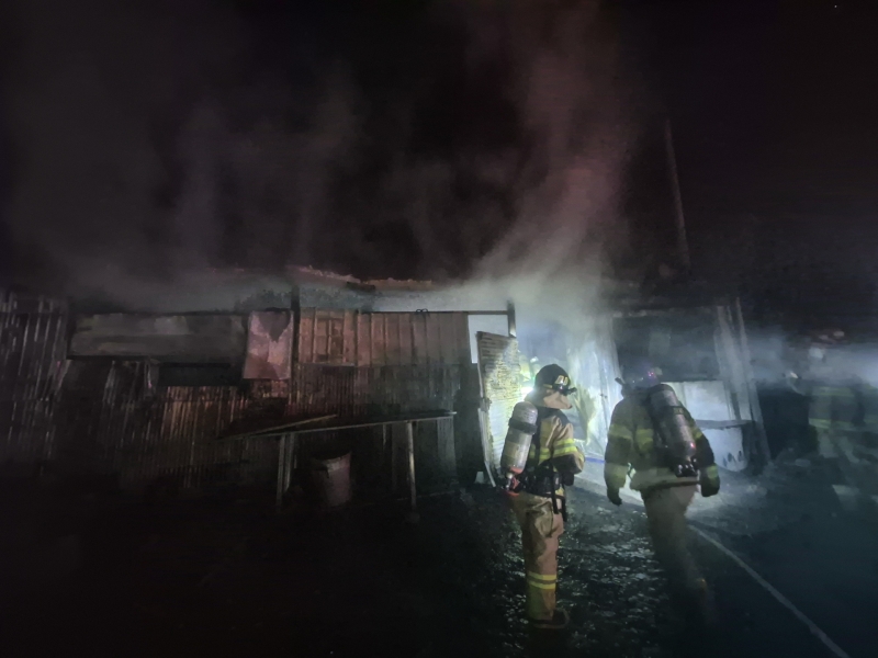 또, 양철판 조립식 컨테이너 100㎡ 한 동이 모두 타 소방서 추산 616만 원 상당 재산피해가 났습니다.