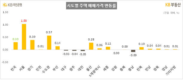 서울 1.03% 등 수도권은 0.57% 상승했고, 5대 광역시도 0.06% 소폭 올랐습니다.