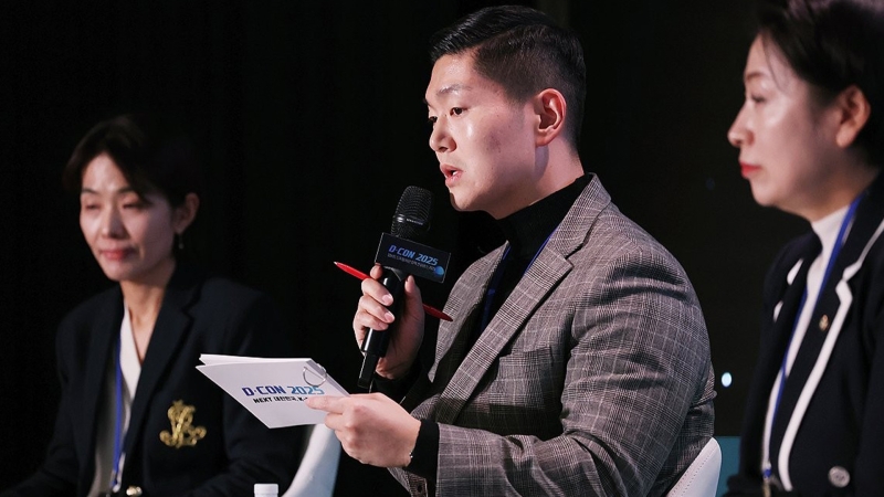 ▲ 19일 오후 서울 영등포구 페어몬트 앰버서더 호텔에서 열린 디지털자산 정책 콘퍼런스 '디콘(D-CON) 2025' 특별대담에서 국민의힘 김재섭 의원이 발언하고 있다 [연합뉴스]