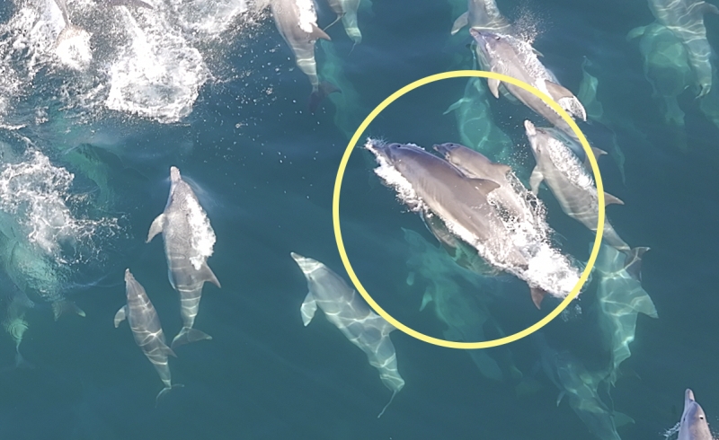 배냇주름을 통해 새끼 돌고래가 태어난 지 얼마 되지 않았음을 유추해 볼 수 있습니다.