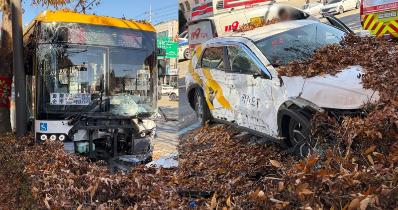 이 사고로 시내버스에 타고 있던 승객 두 명이 가벼운 부상을 입고 병원으로 옮겨졌습니다.