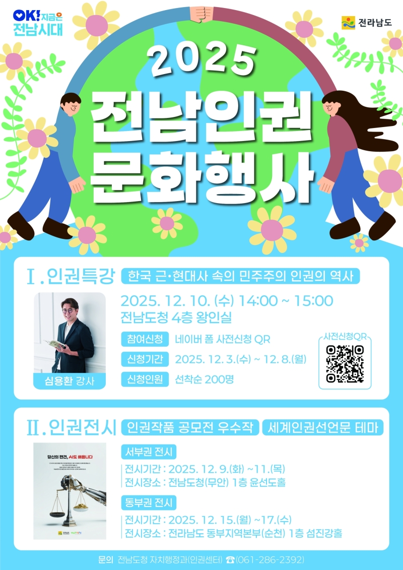 전라남도가 세계인권선언 77주년을 맞아 9일부터 17일까지 '2025 도민인권증진 문화행사'를 마련합니다.