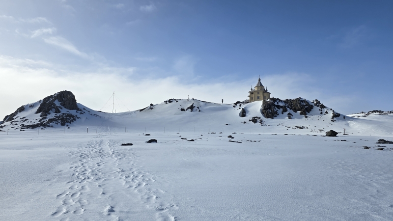 세종기지에서 맥스웰 만(Maxwell Bay)을 건너면 필데스 반도(Fildes Peninsula)가 나오고, 그곳에는 러시아 벨링스하우젠 기지(Bellingshausen Station)가 있다. 기지 앞 언덕에는, 최남단에 성당으로 불리는, 아주 아름다운 목조 성당이 자리 잡고 있다.