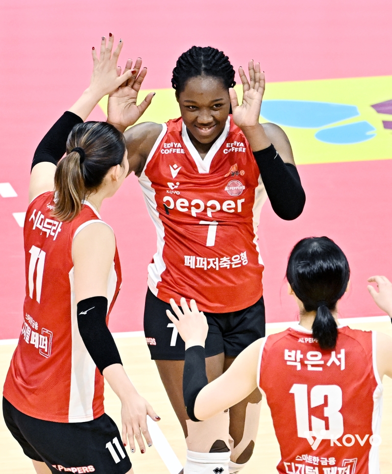 중앙이 막히면서 조이와 박은서, 박정아로 이어지는 사이드 공격도 상대 블로킹 부담이 더욱 커지는 흐름으로 이어졌습니다.