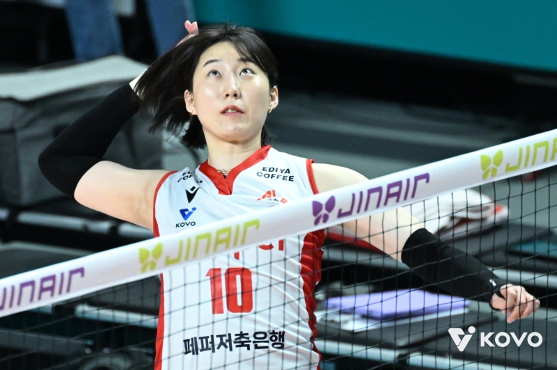 개막 이후 꾸준히 두 자릿수 득점을 올려준 박정아지만, 최근 부진과 체력 부담이 겹치며 날카로운 모습을 잃었습니다.