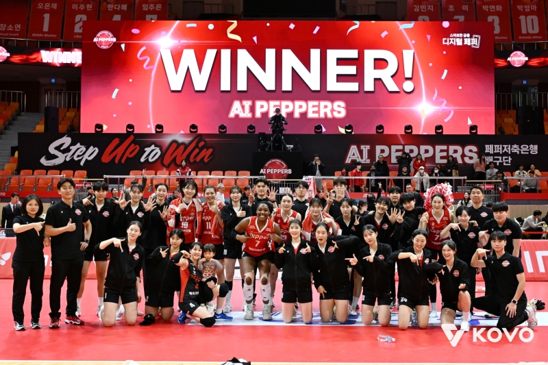 ▲ 지난 30일 GS칼텍스 전에서 승리한 페퍼저축은행 선수단의 모습 [KOVO]