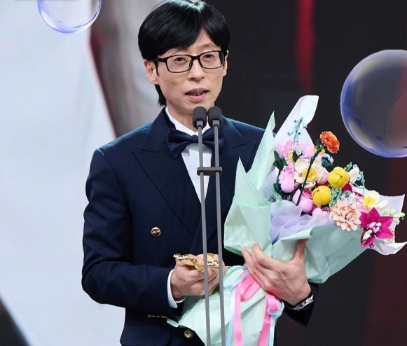 이날 시상식에서는 대상을 수상한 방송인 유재석을 포함한 수상자 전원에게 생화가 아닌 레고로 만든 꽃다발이 전달됐습니다.