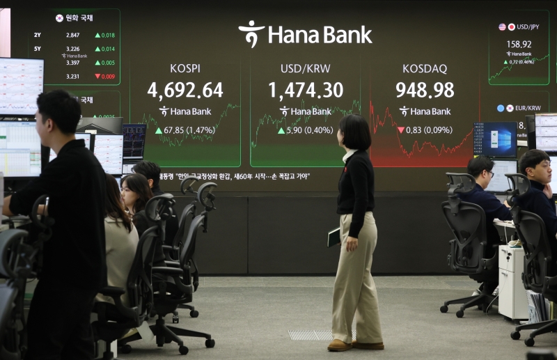 13일 코스피 지수는 전장보다 67.85포인트, 1.47% 오른 4,692.64로 거래를 마감했습니다.