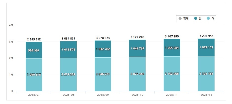 2021년 8월 100만 명, 2023년 10월 200만 명을 돌파한 데 이어 지난해 8월 처음으로 300만 명을 돌파했습니다.