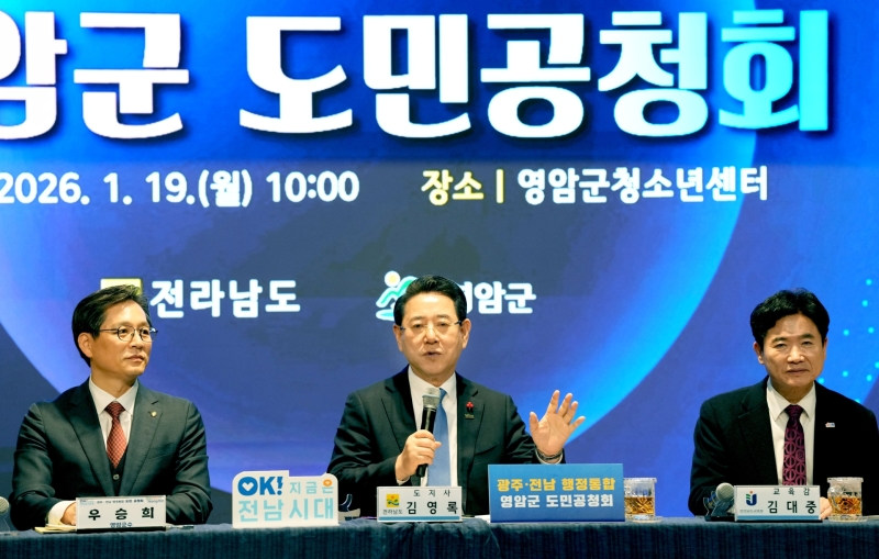 전라남도가 19일 광주·전남 행정통합에 대한 도민 의견을 폭넓게 수렴하기 위해 영암군 청소년센터 대강당에서 첫 도민공청회를 열었습니다.