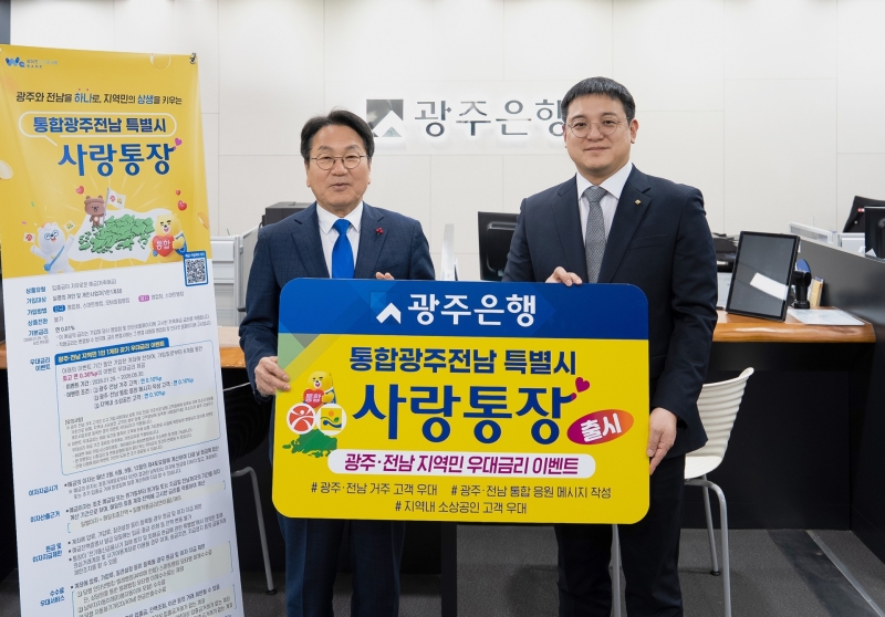 광주광역시와 전라남도의 행정통합이 속도를 내고 있는 가운데, 광주은행이 지역 상생과 균형발전 실현에 동참하기 위해 '통합광주전남 특별시 사랑통장'을 출시했습니다.