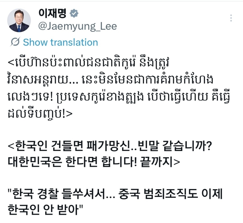 이 대통령은 캄보디아어로 같은 내용을 게시물에 싣기도 했습니다.