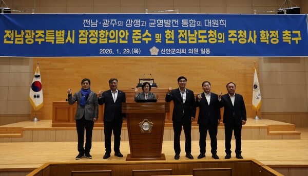 신안군의회는 결의문을 통해 "전남·광주 행정통합은 수도권 집중과 지방소멸 위기에 대응하기 위한 전략적 선택"이라며, "통합에 대한 신뢰를 지키기 위해서는 전남광주특별시의 행정 중심을 현 전라남도청 소재지에 명확히 두는 것이 최소한의 출발점"이라고 강조했습니다.