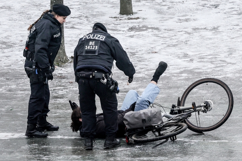 독일 일부 지역은 낮에도 수은주가 0도 아래에 머무는 날씨가 이어지면서 길이 얼어붙어 낙상 사고가 속출하고 있습니다.