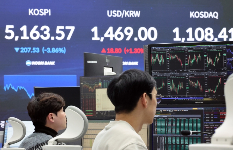 이날 코스피 지수는 전장보다 207.53포인트, 3.86% 내린 5,163.57로 장을 마감했습니다.