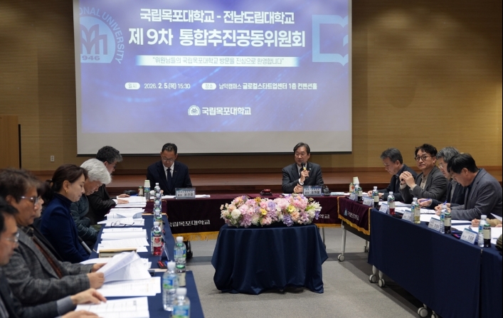 목포대학교는 5일 목포대 남악캠퍼스에서 '통합추진공동위원회 제9차 회의'를 열어 통합 이후 학칙 개정을 통한 조직 정비, 폐지되는 전남도립대 소속 재학생 및 교직원 보호를 위한 경과조치 규정 마련 절차 등을 논의했습니다.
