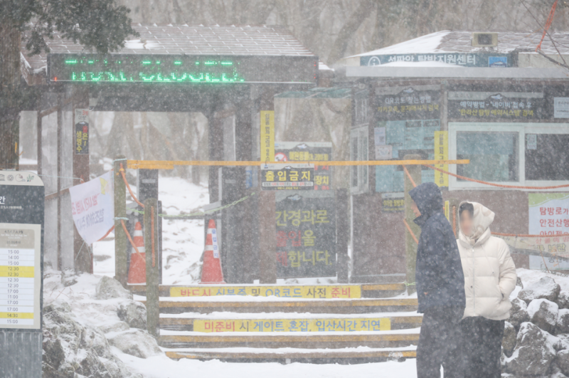 제주도 산지와 남부 중산간에 대설주의보가, 남부를 제외한 제주도 전역에 강풍주의보가 발효 중입니다.