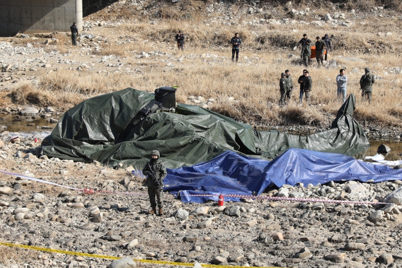 ▲ 9일 경기도 가평군 조종면 현리에서 육군 코브라 헬기가 추락해 군 당국이 현장을 조사하고 있다 [연합뉴스]