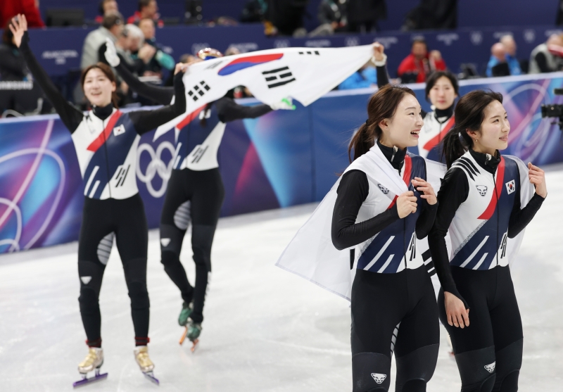 최민정, 김길리(이상 성남시청), 노도희(화성시청), 심석희(서울시청)로 구성된 한국 여자 쇼트트랙 대표팀은 19일(한국시간) 이탈리아 밀라노 아이스스케이팅 아레나에서 열린 2026 밀라노·코르티나담페초 동계 올림픽 여자 3,000m 계주에서 금메달을 목에 걸었습니다.