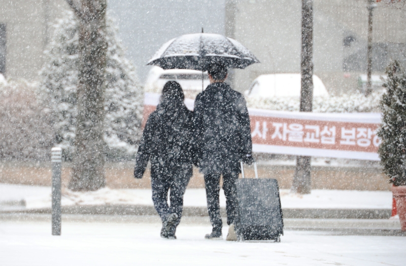 기상청은 이날 전국 대부분 지역에 비 또는 눈이 오겠고, 충청권남부와 전북북부, 경상내륙 중심으로 많은 눈이 내릴 것으로 예보했습니다.
