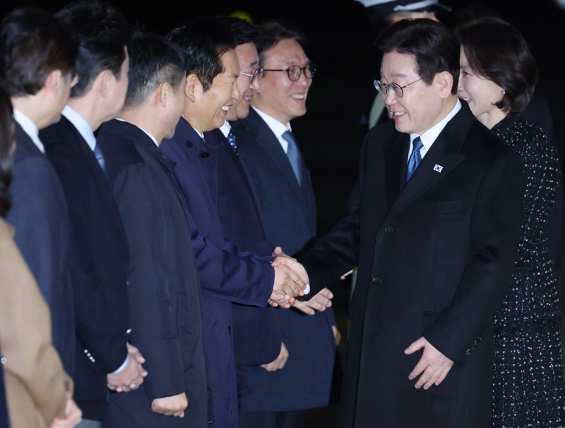 공항에는 김민석 국무총리, 강훈식 비서실장, 민주당 지도부 등이 마중 나와 이 대통령을 맞이했습니다.