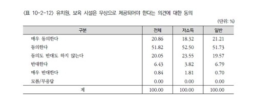 유치원·보육시설 무상 제공에는 72.68%가 찬성했습니다.