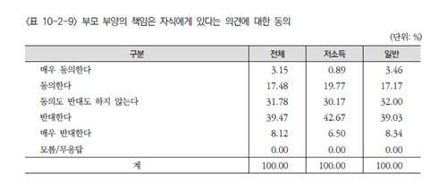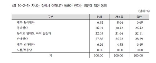 9일 한국보건사회연구원이 발표한 제20차 한국복지패널 조사 결과에 따르면 '부모를 모실 책임이 전적으로 자식에게 있다'는 의견에 동의한 비율은 20.63%에 그쳤습니다.