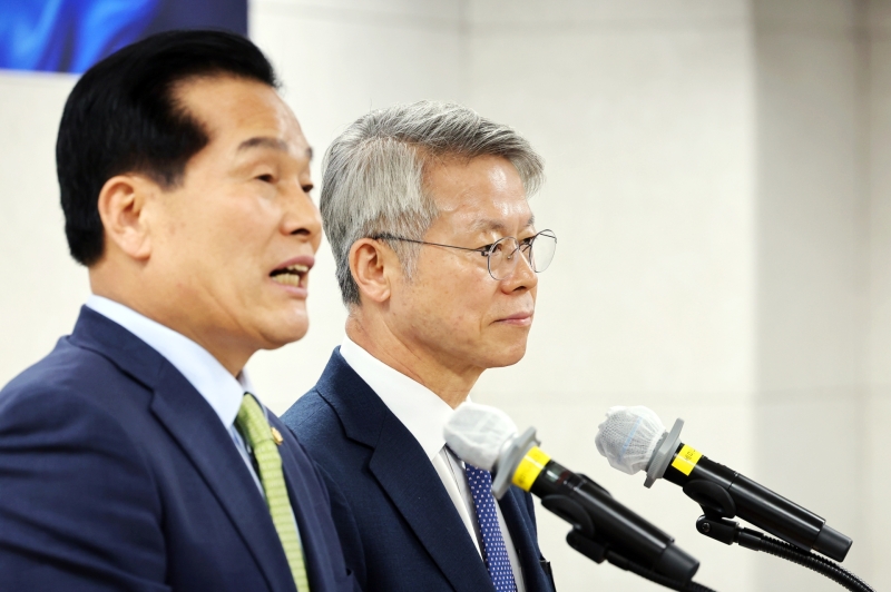 두 후보는 1일 오전 10시 30분 전남 여수에서 공동 기자회견을 열고, 주철현 후보가 민형배 후보를 지지하는 후보 단일화를 선언했습니다.