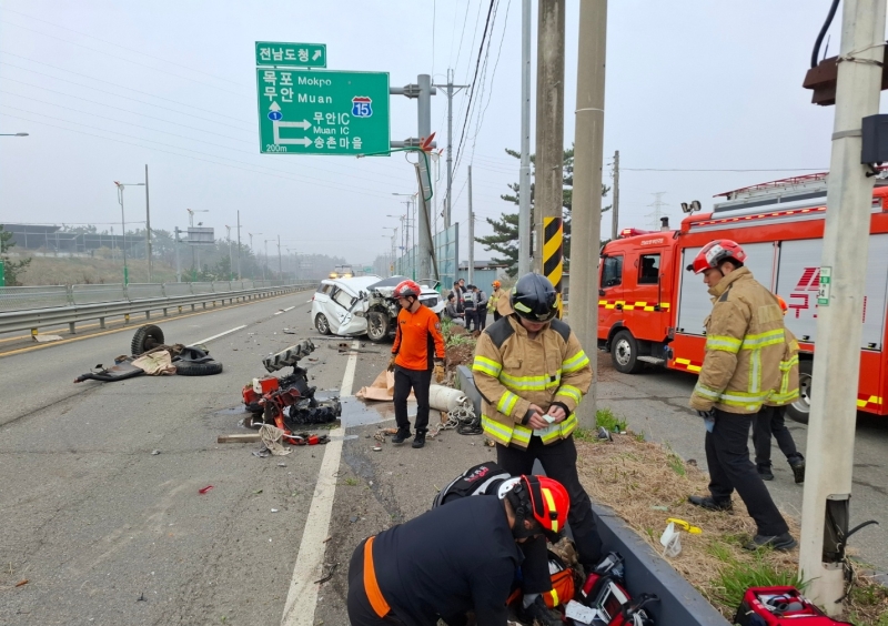 3일 오전 8시 40분쯤 전남 함평군 엄다면의 한 4차로 도로에서 20대 남성이 몰던 카니발이 차선을 변경하다 앞서가던 경운기를 들이받았습니다.