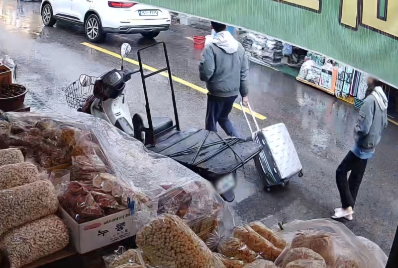 ▲ 지난 18일 이들 부부가 캐리어를 끌고 중구 주거지에서 신천으로 이동하는 모습이 담긴 폐쇄회로(CC)TV 영상 중 일부 [연합뉴스]