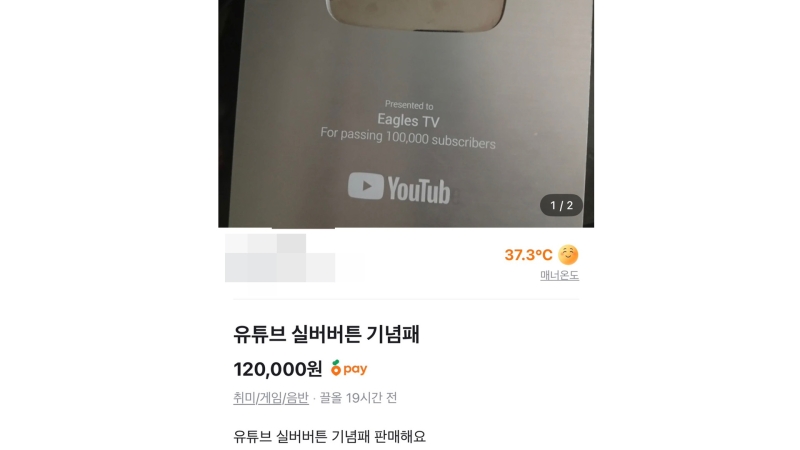 중고거래 플랫폼 당근마켓에 '이글스 TV'의 명칭이 선명하게 새겨진 실버버튼이 매물로 등장하면서 야구팬들 사이에서 논란이 확산됐습니다.